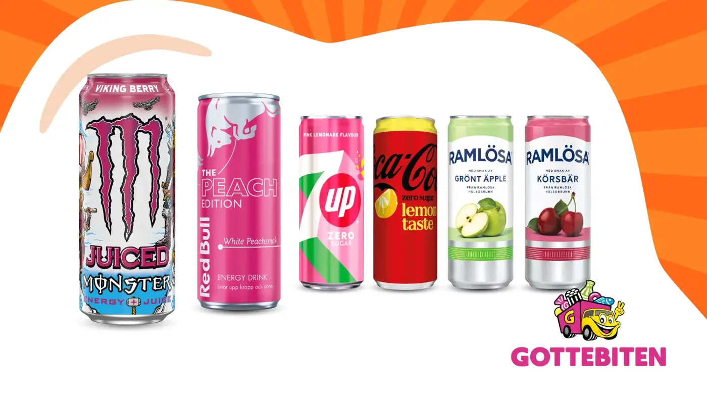 FrÄn Monster Viking Berry - Red Bull White Peach till lÀsk-klassiker i ny version som 7UP Pink Lemonad och Coca-Cola Zero Lemon. Gott friskt vatten frÄn Ramlösa bÄde Àpple- och körsbÀrssmak.